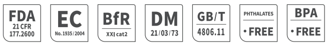 FDA 21 CFR 177.2600, EC No. 1935/2004, BfR XXI cat2, D.M. 21/03/73, GB/T4806.11, Phthalates free